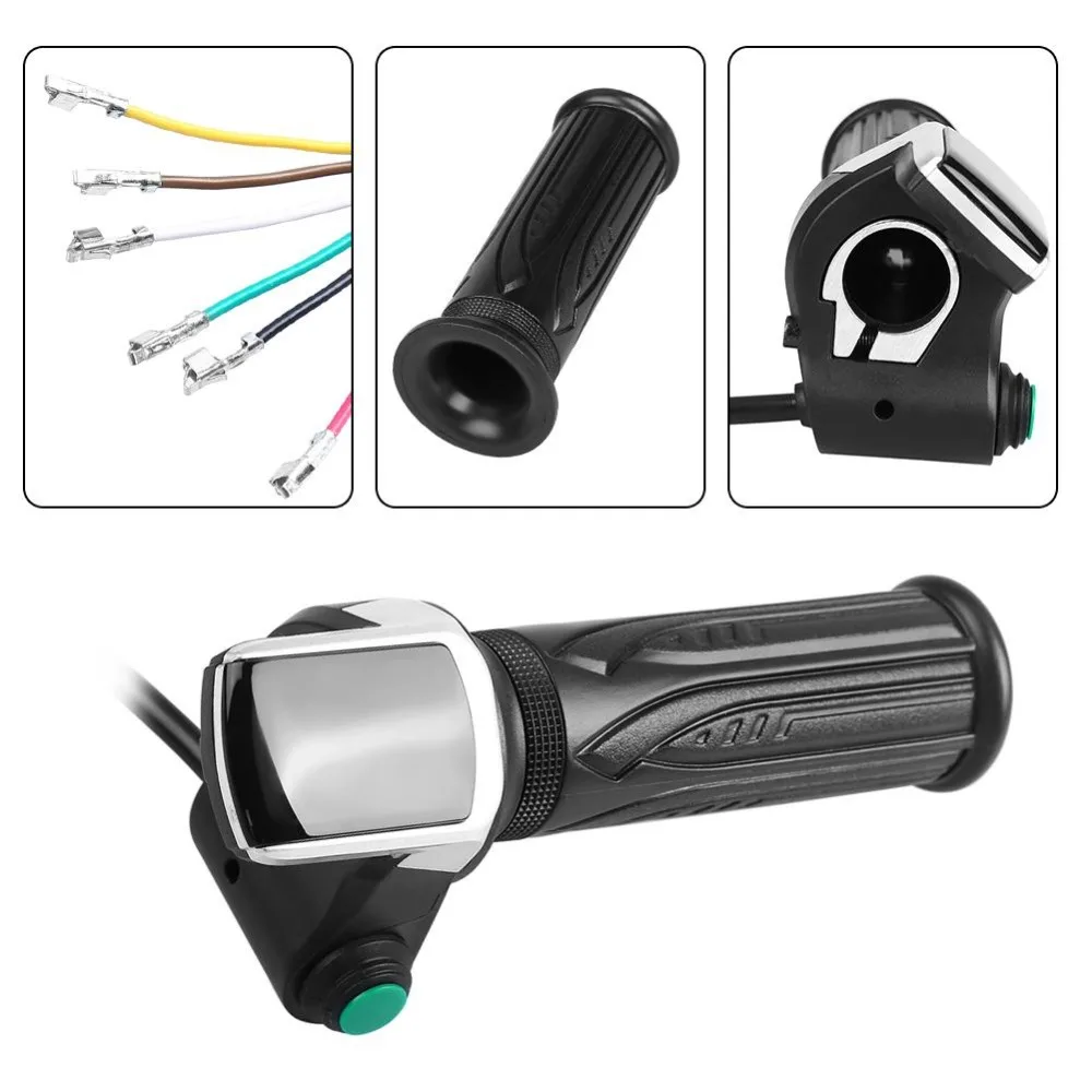 Display Electric Bike Throttle Electric Bike Motorcycle Electric Scooter Ebike handlebar Grip Features: This pair of handlebar grip adopts good quality materials, waterproof, sturdy and durable. LCD display can clearly show the power and state of electric lock, indicator light adopts quality LED, well distribution of light makes it easier to see in night. The handlebar grip are design according to ergonomics, the grooves on it are good for comfortable and anti-skid holding, can easily adjust speed while using. Easy to install and use, the cable length is about 1.5m, enough for most uses. With an electric auto lock, button type lock is easy to use. Suitable for electric bicycles, cars, scooters. Specification: Material: ABS + PMMA + LCD Color: Shown as picture Options: 36V; 48V Hall Input Voltage: 0.8-2.4V Waterproof Grade: IPX5 Quantity: 1pair Handlebar Size: Approx. 16 x 7cm / 6.2 x 2.7in Cable Length: Approx. 1.5m / 59in Weight: Approx. 300g Package List: 1 x Pair of Grips Note: Each cable is labeled with color for different uses. Red: throttle cable (input voltage 5V) White: speed adjustment signal Black: ground electrode Green: positive electrode of display Yellow: power output Brown: power input About payment: We support the following payment methods. All payments made on AliExpress are processed by Alipay. 1) We accept Alipay, West Union, TT.All major credit cards are accepted through secure payment processor ESCROW. 2) Payment must be made within 3 days of order. 3) If you can't checkout immediately after auction close, please wait for a few minutes and retry Payments must be completed within 3 days. About shipping: 1. WORLDWIDE SHIPPING.(Except some countries and APO/FPO) 2. Orders processedtimely after thepayment verification. 3. We only ship to confirmed order addresses. Your order address MUST MATCH your Shipping address. 4. The images shown are not the actual item and are for your reference only. 5. SERVICE TRANSIT TIME is provided by the carrier and excludes weekends and holidays. Transit times may vary, particularly during the holiday season. 6. If you have not received your shipment within the period, please contact us. We will track the shipment and get back to you as soon as possible with a reply. Our goal is customer satisfaction! 7. Due to stock status and time differences, we will choose to ship your item from our first available warehouse for fast delivery. 8. We seller are not in charge of import duty, buyer is responsible for that. Any dispute caused by this is unreasonable. 9. BR buyer please provide the cpf or cnpj, it will be better for you to get it more quickly. thanks Return and Refund: 1. You have 7 days to contact us and 30 days to return it from the date it was received. If this item is in your possession more than 7 days, it is considered used and WE WILL NOT ISSUE YOU A REFUND OR REPLACEMENT. There are NO EXCEPTIONS! Shipping cost is bear by both seller and buyer in half. 2. All returned items MUST BE in the original packaging and you MUST PROVIDE us with the shipping tracking number, specific reason for the return, and your po#. 3. We will refund YOUR FULL WINNING BID AMOUNT, upon receipt of the item in its original condition and packaging with all components and accessories included, AFTER BOTH Buyer and Seller cancel the transaction from aliexpress. OR, you may choose to have a replacement. 4.We will bear all the shipping cost if the product(s) is (are) not as advertised. About feedback: We maintain high standards of excellence and strive for 100% customer satisfaction! Feedback is very important We request that you contact us immediately BEFORE you give us neutral or negative feedback, so that we can satisfactorily address your concerns. It is impossible to address issues if we do not know about them!