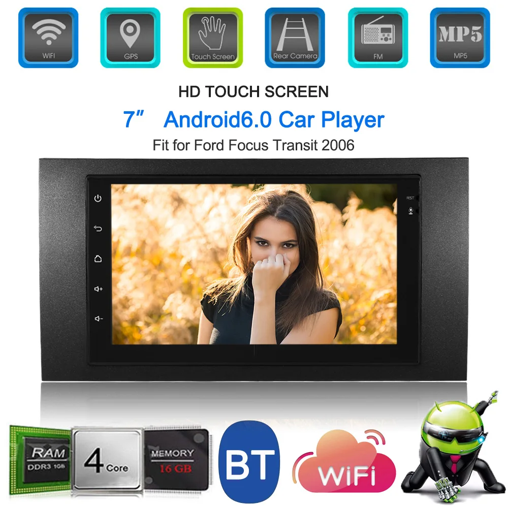 2 Din 7'' Smart Android 6.0 Car Stereo Radio Player GPS Navigation with BT WIFI AM/FM Fit for Ford Focus Transit 2006
